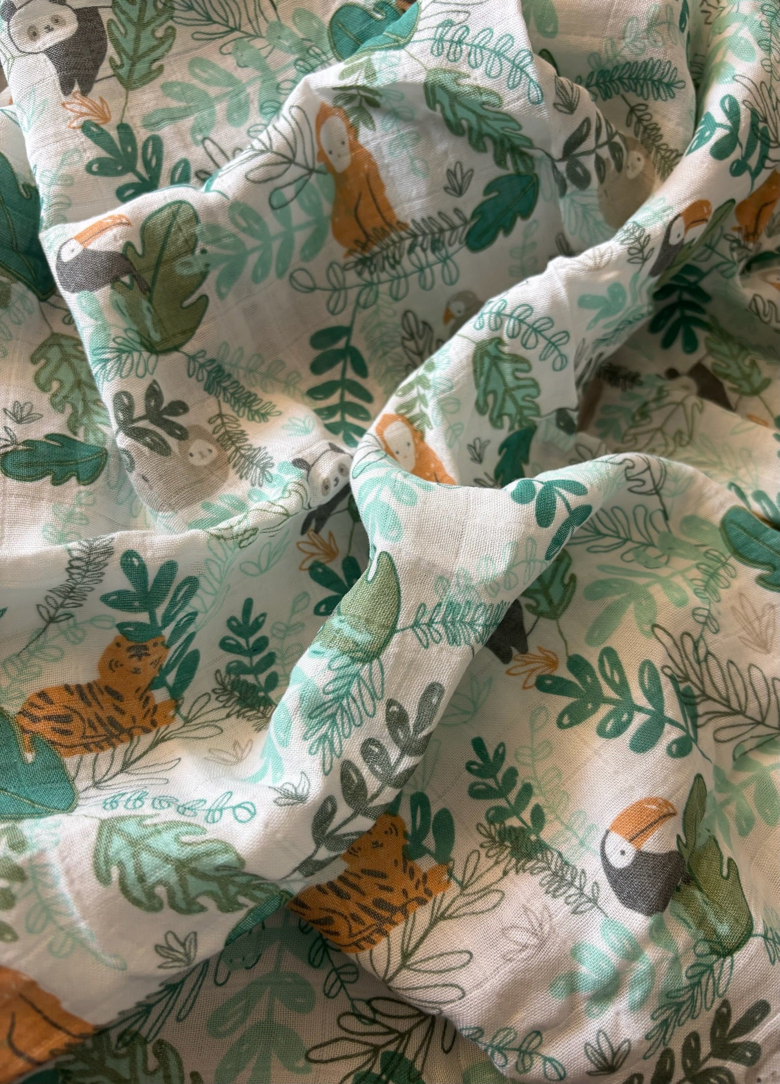 - Soft bamboo and organic cotton swaddle blanket.