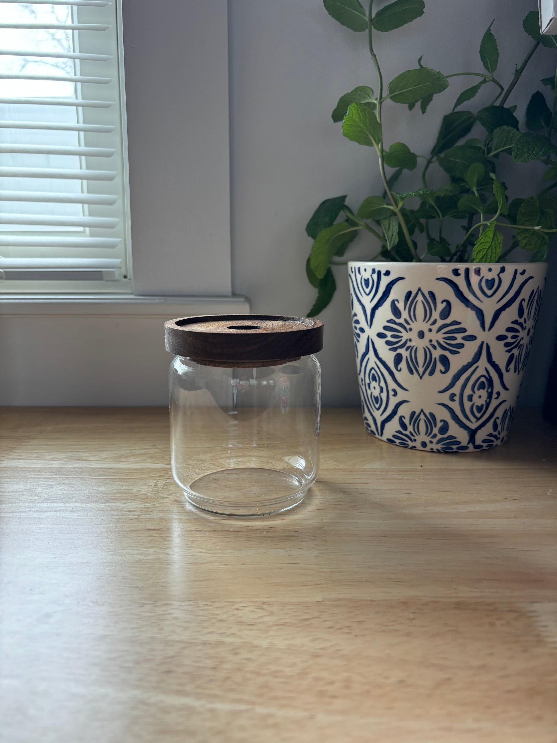 Add a touch of natural beauty to your kitchen with the Acacia Glass Jar. This apothecary-style jar features a natural acacia wood lid that steals the show with a clean, clear glass body. Each lid's wood grain is entirely unique, giving your jar rustic character. Elevate any countertop and bring in those natural elements with these beautiful jars.